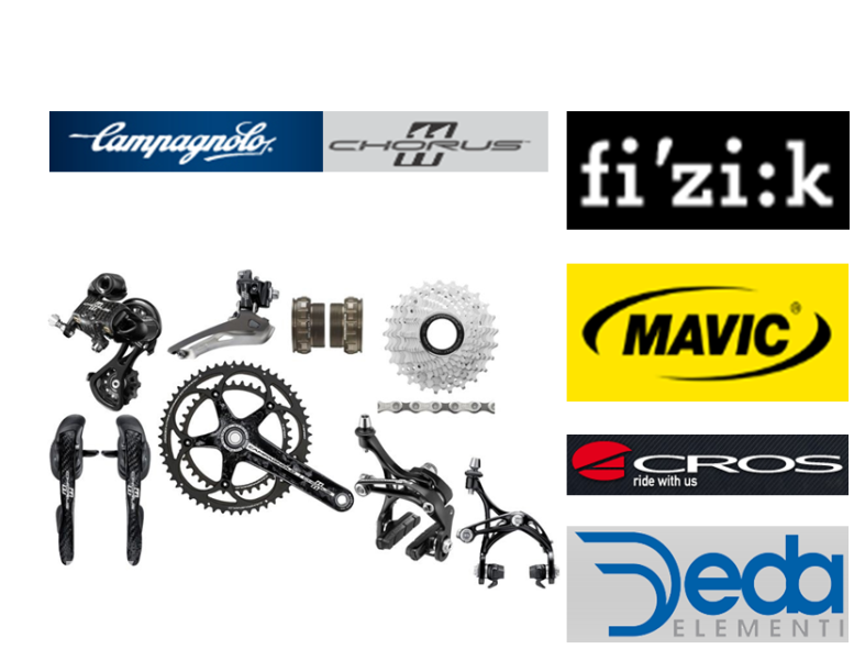 Kompletträder mit Schaltgruppen von SRAM, SHIMANO und CAMPAGNOLO können als Upgrade zusammengefügt werden. Laufrad- und Komponentenupgrades sind gegen Aufpreis möglich.